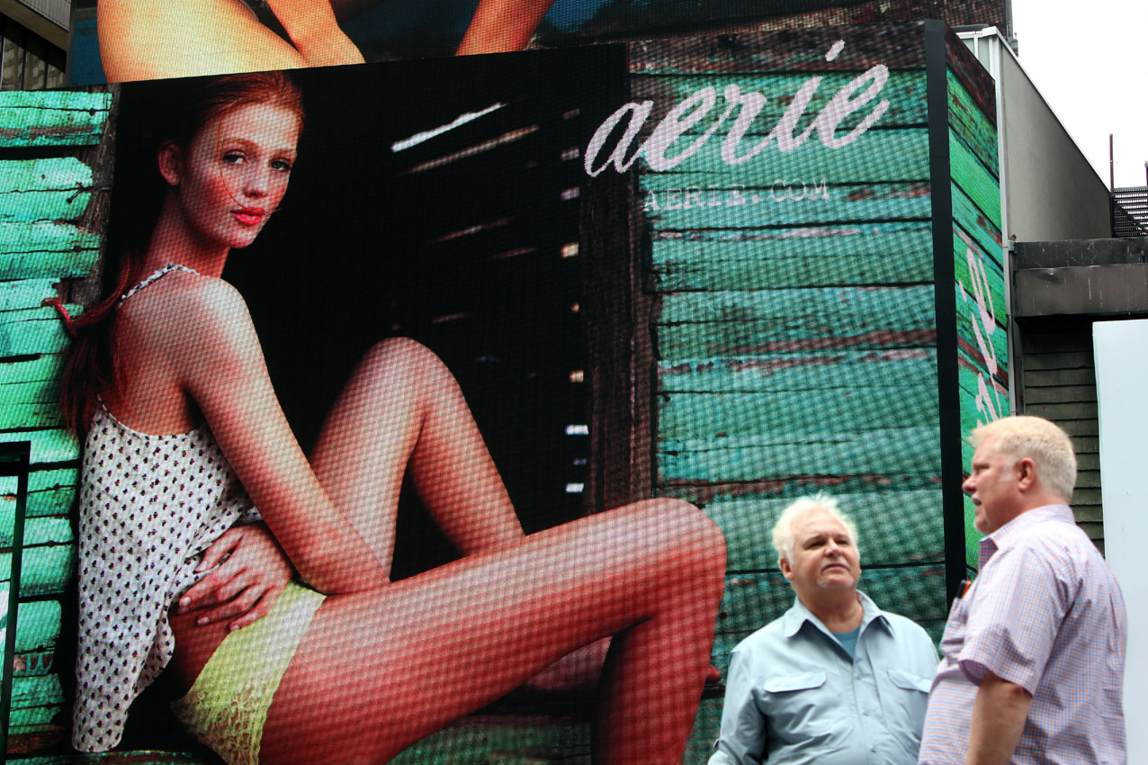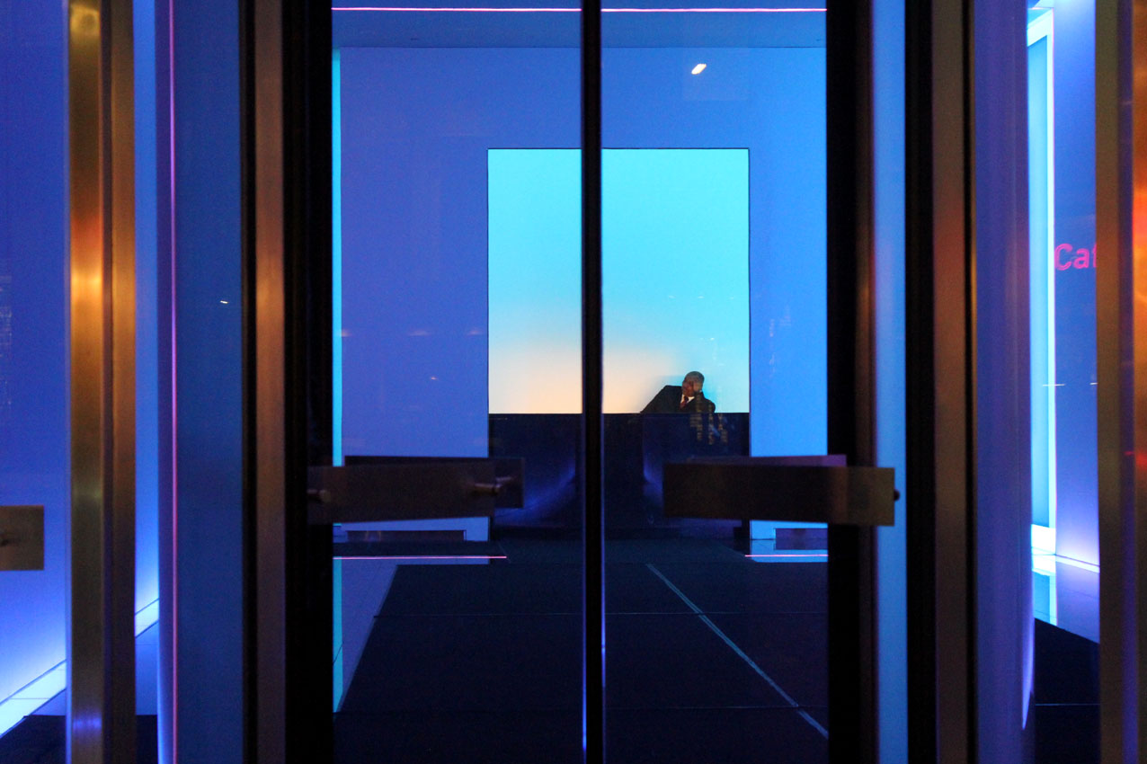 Assise au bar dans la vitrine, je regarde la foule défiler. Une pléthore d’étudiants fraîchement diplômés traînent des toges foncées sur l’asphalte de Hell’s Kitchen. Leur agitation oscille entre enfantillage et magnétisme. A côté de moi, deux hommes boivent du café dans des gobelets. En carton. En silence. Puis, de façon sporadique, l’un d’eux distille une phrase parfaitement cryptique, souvent inachevée, dans un dictaphone. Un personnage de David Lynch n’eût guère fait beaucoup mieux.