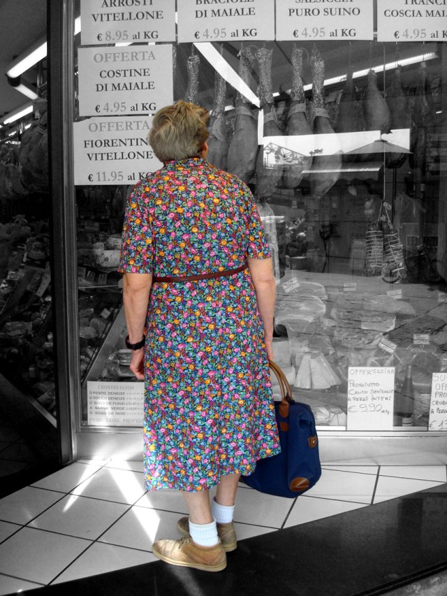Et bien sûr les « nonne », mes ambassadrices de prédilection, avec le coude mou, le cabas et une robe à fleurs. On ne la leur fait pas. Elles vont droit au magasin de charcuterie, il y a une offre sur les côtelettes de porc. Avec l’accent du coin, elles commandent de la coppa pour toute la famille et repartent en claudiquant, même dans des chaussures orthopédiques, leurs pieds calleux annoncent déjà les chrysanthèmes d’automne.