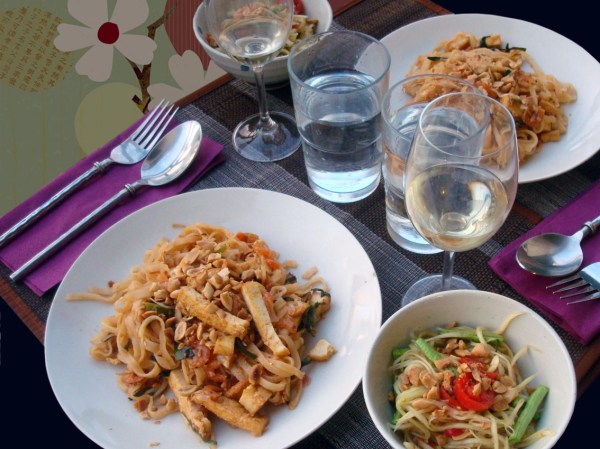 Pendant que le som tam malako infuse, on attaque le pad thaï.