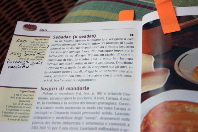 La «cuoca» a décidé de m’initier à la confection des «sebadas», aussi appelés «seadas» suivant les variantes patoises. Ces sortes de crêpes farcies font partie des desserts typiques de la Barbagia, contrée montagneuse du Centre-Est et du Logudoro, zone de pâturages au Nord-Ouest.