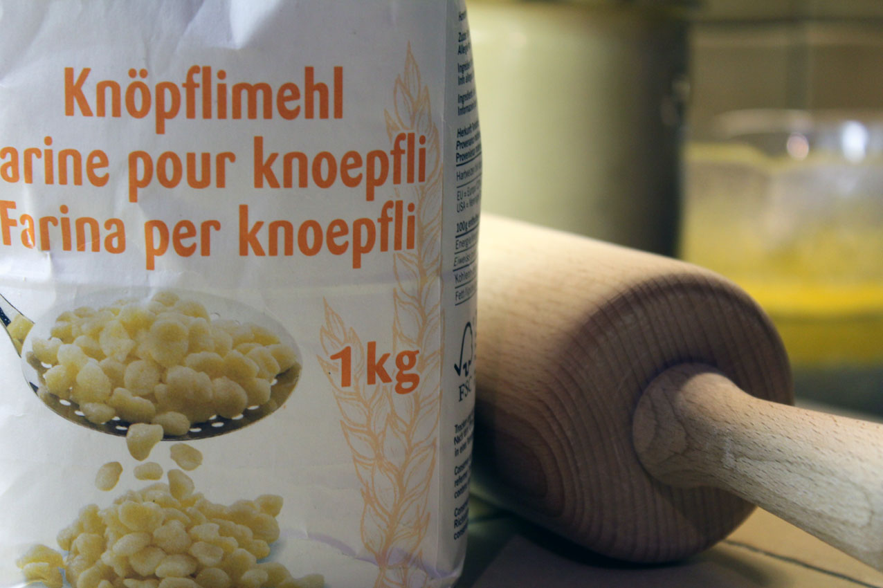Nous tamisons 200 grammes de farine de blé dur. Le terme «knöpflimehl» et l’illustration sur l’emballage causent une furtive envie de fuir à toutes jambes mais cette poudre blonde joue le jeux à merveille. On ajoute un décilitre d’eau tiède et une pincée de sel si on est amoureux. La recette initiale préconise du saindoux or les sources sûres de Signorina Giannardi autorisent l’usage du beurre fondu. On en bascule donc 70 grammes dans le bol. Cici y plante les infimes diamants de ses ongles manucurés et malaxe la préparation jusqu’à ce qu’une boule docile se forme. On la laisse reposer, le temps de converser un brin, évoquer le passé avec des cils moites, reprendre un verre de Pinot Grigio del Veneto.