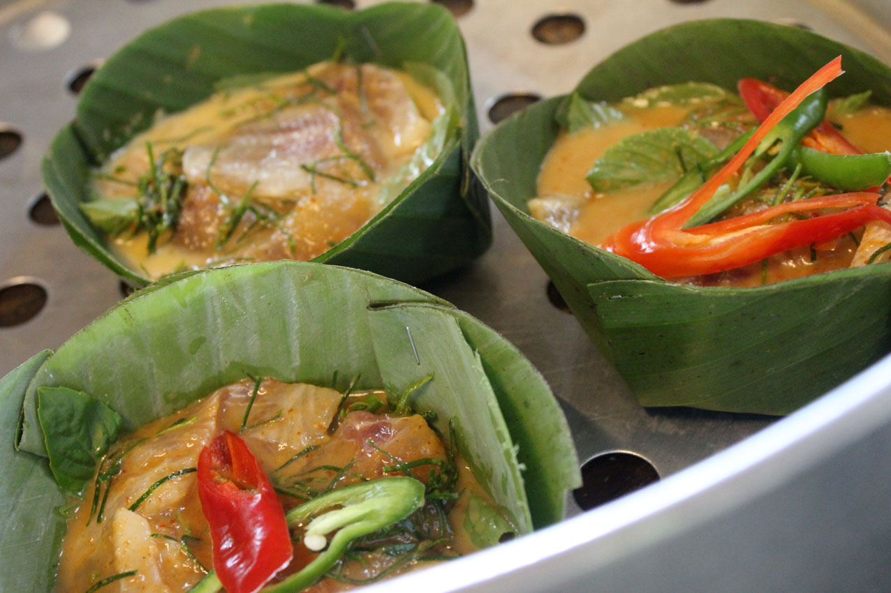L’école est en dehors de la ville, sous une charpente décorée, vingt postes de cuisson à gaz et les tables centrales auxquelles on s’assied, crayons affûtés, disposés à gribouiller le livre de recettes. Celui qu’il ne faut pas suivre à la lettre, les cuillères pouvant considérablement varier en taille. Au final, les doigts sont les meilleures mesures. Et le cœur. Il est impératif de toujours goûter et rectifier, ainsi que de disperser moult interjections bruyantes au moment d’éclater des piments sur la planche, sans quoi le plat est voué à l’échec. La citronnelle se coupe en diagonale ou s’écrase afin d’en libérer les saveurs et la soupe ne doit jamais être remuée pendant qu’elle bout. Chaleur brutale et acier fin.