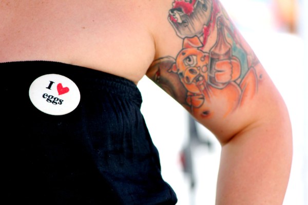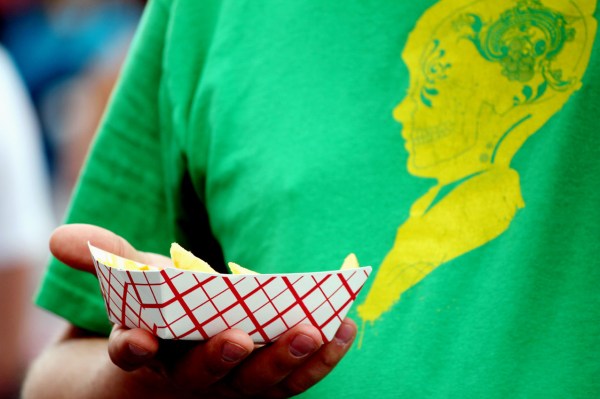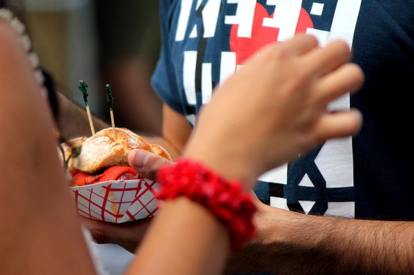 Sur fond de terre battue, j’ai pactisé avec le monde. Mes pulsations cardiaques accélèrent et les enfants de la diaspora s’alanguissent tels ces «bialystoker kuchen», des petits pains polonais au centre desquels une dépression déborde d’oignons émincés. Les cœurs balancent entre sodas aux myrtilles ou au basilic thaïlandais. Le choix embarrasse parmi les oeufs heureux de Brooklyn, le beef jerky nourri au gazon, brûlure du Quechua et souvenirs californiens, ces «pupusas» du Salvador faites de maïs braisé, façonnées à la main et farcies de diverses curiosités, la limonade de lavande, des doughnuts à l’hibiscus, des sandwiches à l’omelette, au quinoa, roquette et pédoncule d’ail, des «mafaldine» complètes, des macarons au caramel salé ou amandes grillées, des madeleines à la marmelade, des brownies au double chocolat de Madagascar, moult granitas au gingembre, des crumbles, des tartes aux pacanes, des huîtres. Ces paires de gaufres pinçant une glace. Du ketchup, du tempeh.