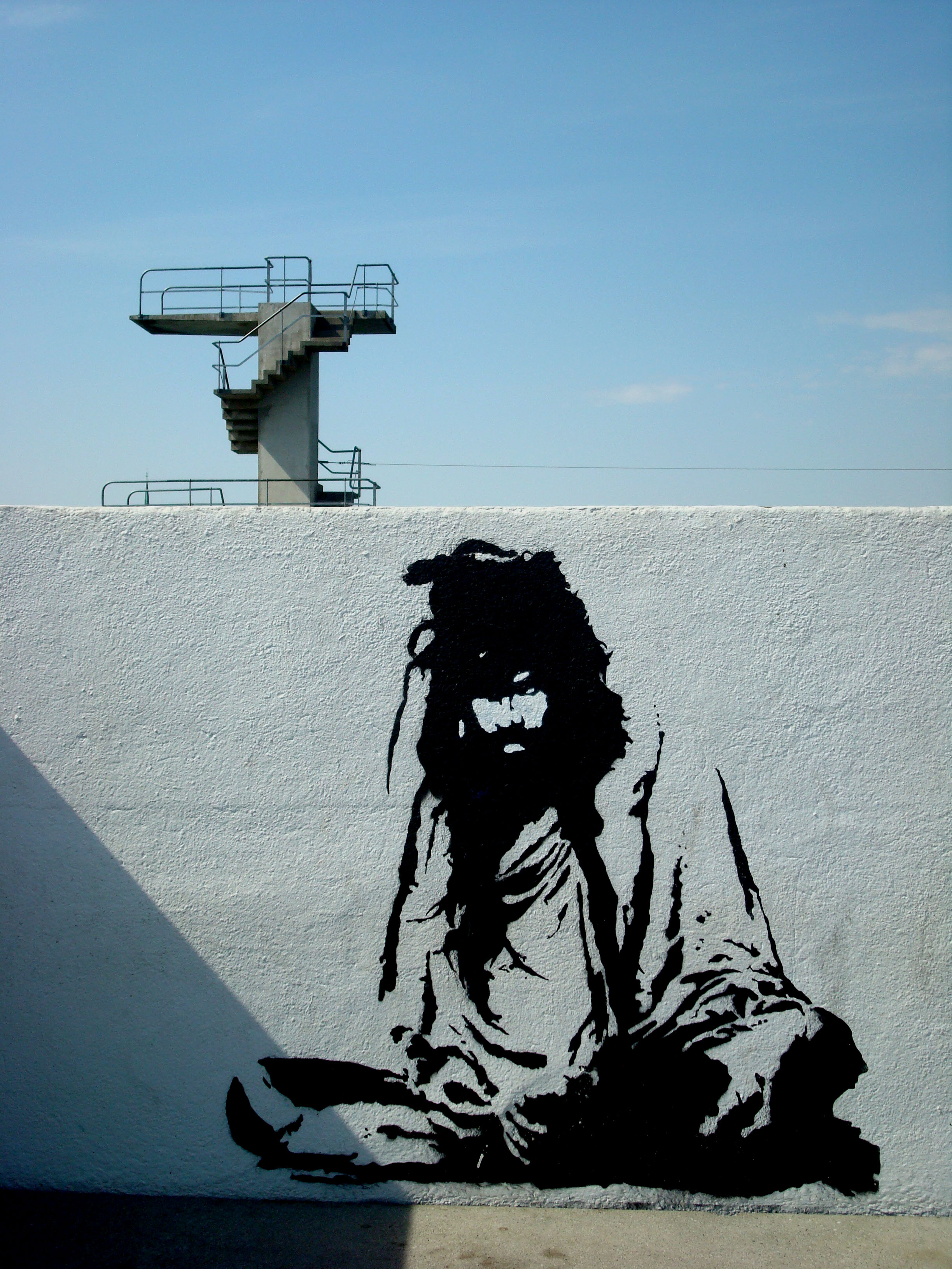 Or l’eau est désormais plus claire autour des cubes de béton, qui depuis 1932 servent de bracelets à nos bacchanales. La frondaison des peupliers se garnit, linges éponges et diverses paires de seins saillissent derechef parmi les rameaux de lauriers, on peut voir le verre de jus de gingembre à moitié plein.